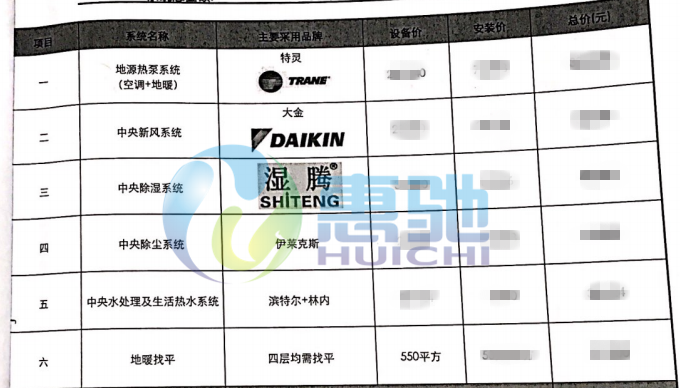 家居集成系統(tǒng):特靈地源熱泵系統(tǒng)、大金新風系統(tǒng)、凈水系統(tǒng)、中央除濕、中央除塵系統(tǒng)。