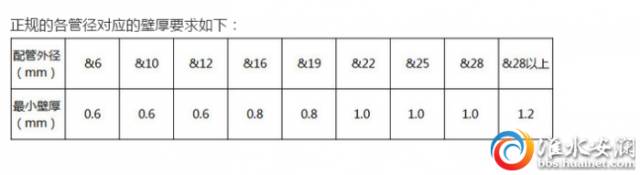 正規(guī)的各管徑對應(yīng)的壁厚要求如下: