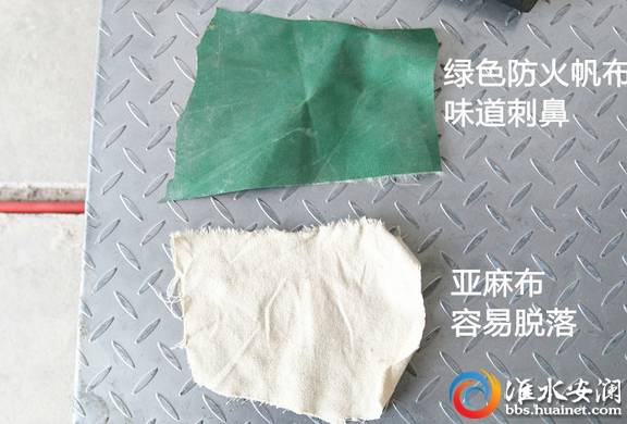 綠色帆布:防火材料,味道比較重,開1-2年味道也散不掉,稍靠近些感覺明顯很刺鼻。