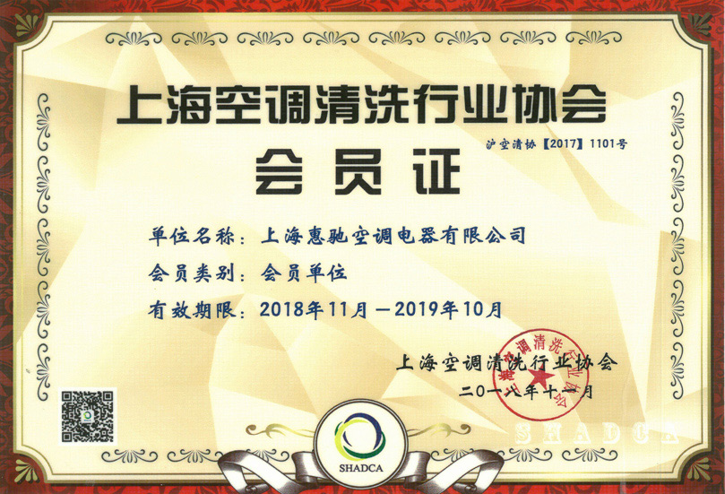 上海空調(diào)清洗行業(yè)協(xié)會(huì)會(huì)員證